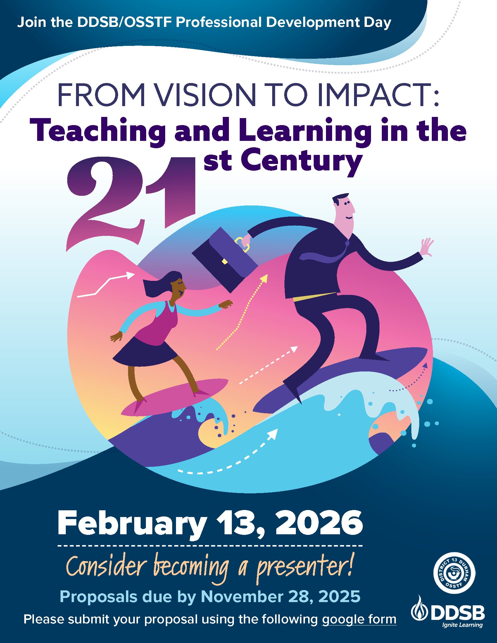 Our OSSTF/DDSB joint PD Day will be held on February 13, 2026. This year’s theme is curriculum-based, with the title “From Vision to Impact: Teaching and Learning in the 21st Century.”
